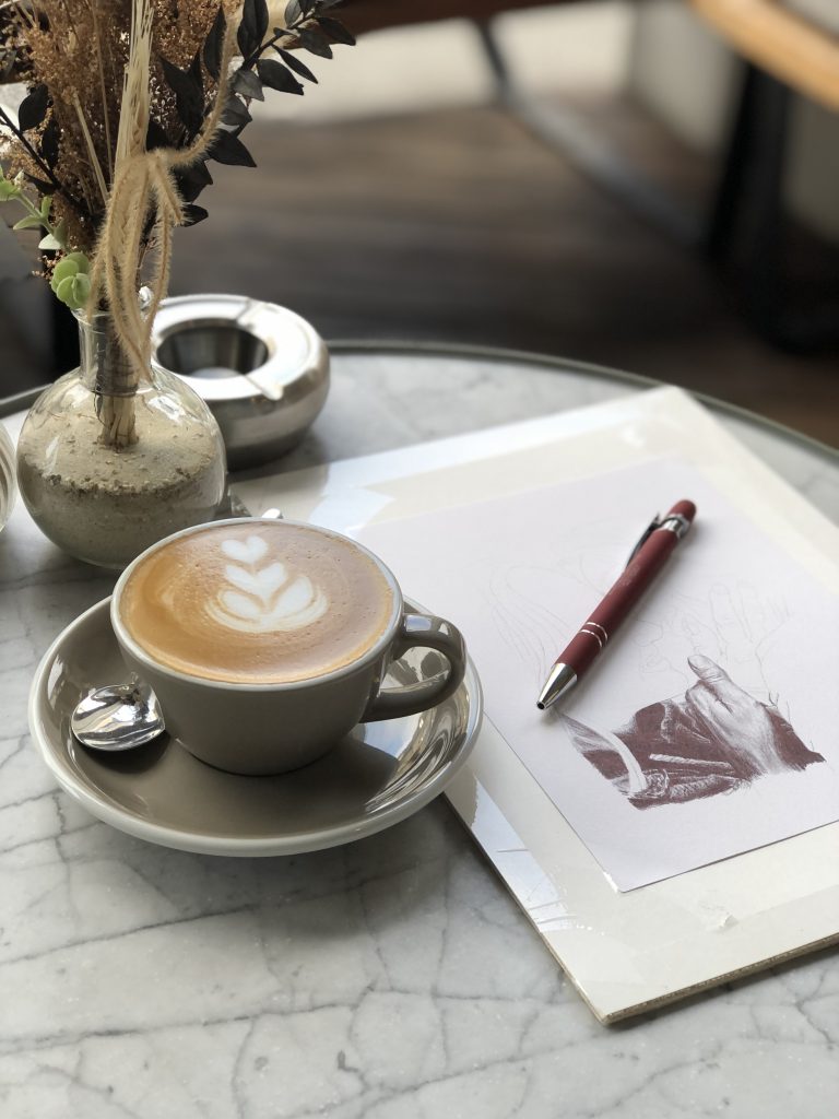- Yes, I love coffee and drawing while having one quietly in any coffee shop. That’s why you will see more than one picture of coffee and drawings together with me!