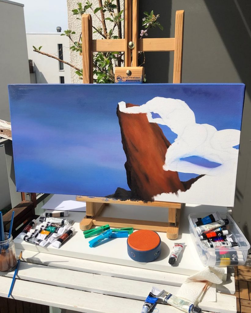 Without having a big space where I can do it – family life in an apartment makes it a bit complicated! – I limit myself at the moment to canvases of not very large sizes, but equally perfect to let my imagination fly!