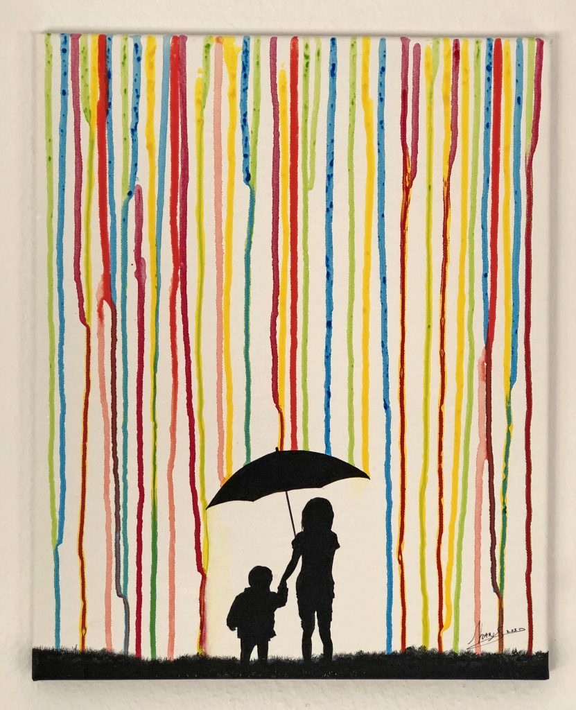 I create realistic paintings, portraits that I can be asked to create, montages of known styles (like Banksy Rain), or landscapes.